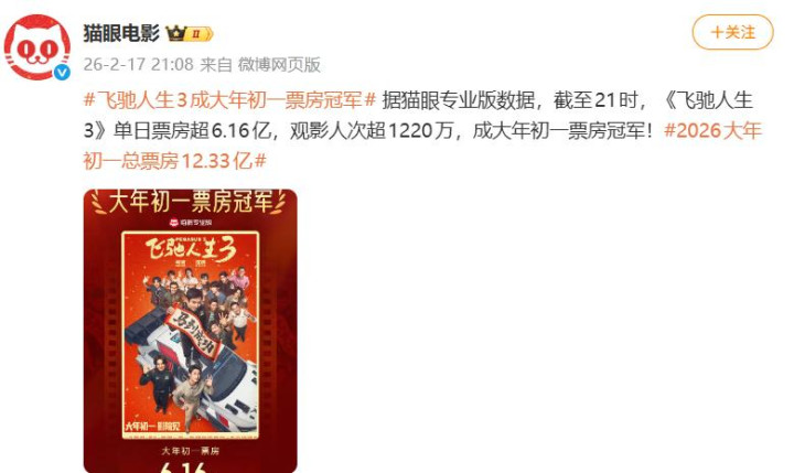 稳坐春节档前三的宝座。